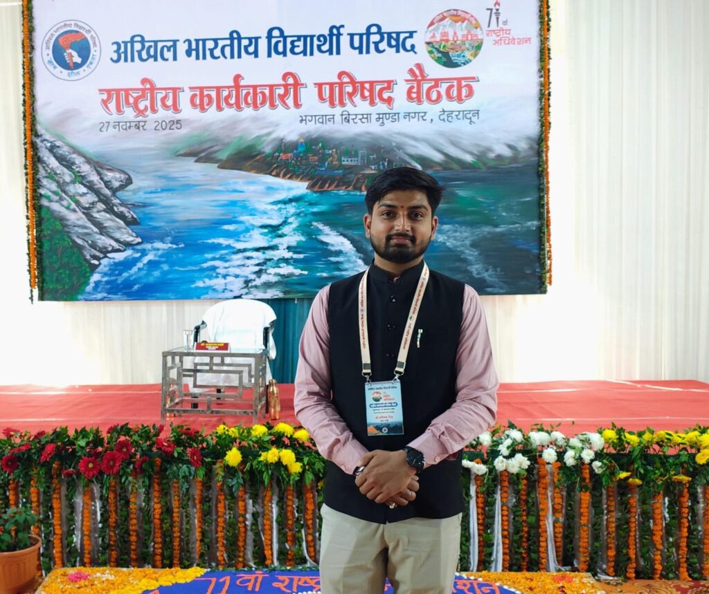 धौलपुर । अखिल भारतीय विद्यार्थी परिषद द्वारा देहरादून में आयोजित 71वें राष्ट्रीय अधिवेशन में देशभर से 1800 प्रतिनिधि कार्यकर्ताओं ने सहभागिता की। भगवान बिरसा मुंडा नगर (परेड ग्राउंड) में संपन्न तीन दिवसीय अधिवेशन में राष्ट्रीय अध्यक्ष प्रो. रघुराज किशोर तिवारी ने जयपुर प्रांत के प्रांत मंत्री अभिनव सिंह को केंद्रीय कार्यसमिति सदस्य के महत्वपूर्ण दायित्व की घोषणा की। अभिनव सिंह वर्ष 2017 में राजकीय पी.जी. कॉलेज, धौलपुर के छात्रसंघ अध्यक्ष रहे और तभी से छात्रहित के मुद्दों को सशक्त रूप से उठाते आए हैं। वे भारत सरकार द्वारा आयोजित राष्ट्रीय युवा संसद 2019 में राजस्थान का प्रतिनिधित्व कर चुके हैं। राज्य स्तरीय एनएसएस उत्कृष्ट स्वयंसेवक पुरस्कार से सम्मानित होने के साथ साथ वे नेशनल डेज़र्ट ट्रैकिंग कैंप में भी नेतृत्व कर चुके हैं। धौलपुर में उन्होंने रक्तदान, महिला सशक्तिकरण, नशामुक्ति, सड़क सुरक्षा एवं स्वच्छता जैसे अभियानों में जनसरोकार की अग्रणी भूमिका निभाई है। इसके अतिरिक्त, उन्होंने वर्ष 2019 में पूर्वोत्तर राज्यों में सील टूर के माध्यम से छात्र जीवन एवं संस्कृति का अध्ययन किया। साथ ही,सितम्बर 2024 में आयोजित कॉमनवेल्थ पार्लियामेंट्री एसोसिएशन द्वारा न्यूज़ीलैंड की संसद वेलिंगटन में आयोजित 12वीं कॉमनवेल्थ यूथ पार्लियामेंट में भारत का प्रतिनिधित्व कर अंतरराष्ट्रीय स्तर पर देश का गौरव बढ़ाया। वर्तमान में वे एबीवीपी जयपुर प्रांत के प्रांत मंत्री के रूप में दायित्व निभा रहे हैं।